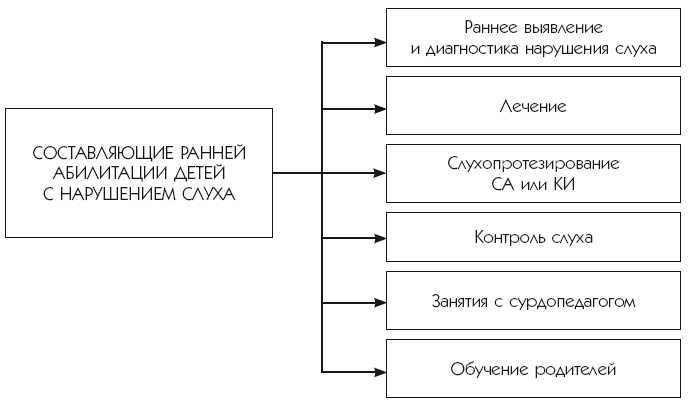 Рис. 1.8. Составляющие ранней абилитации детей с нарушениями слуха