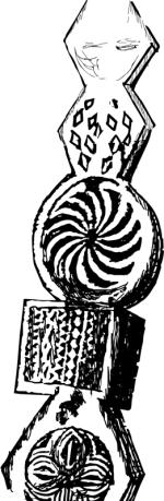 Рис. 13. Родовой столб на кладбище. В центре столба вырезан символ солнца подземного мира («черное солнце»). Его лучи вращаются влево, а не вправо. Народность калаши