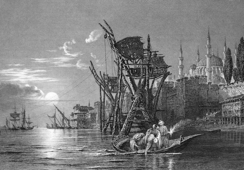 Ночь, именно потому, что она делает город похожим на сон, на сказку, потому, что она – источник таинственного зла, усиливает черно-белую атмосферу Стамбула. Взгляд путешественника-европейца на ночную темноту как на таинственный покров, укрывающий этот загадочный город, способствующий совершению новых неприглядных деяний, похож на взгляд стамбульца, не понимающего сути плетущихся во дворцах интриг и заговоров. И иностранные путешественники, и сами стамбульцы очень любили истории об убитых злоумышленниках или женщинах из гарема, тела которых выносили из двери в дворцовой стене, выходящей на Золотой Рог, и на лодке отвозили в море.