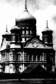 Проект собора исполнил местный архитектор А. А. Кюи (1824-1909). По своему внешнему виду он напоминал храм Христа Спасителя в Москве. Строился он долго – от проекта до освящения прошло около 30 лет. Архитектор А. А. Кюи не смог увидеть своё детище в камне, скончавшись за десять лет до завершения строительства. Собор разделил печальную участь многих воронежских храмов, закрытых в 1930-е годы. На его месте разбили Комсомольский сквер, который и сейчас существует между улицами Свободы, 9 Января и Кольцовской.