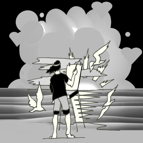 Большой человек вырастал с огромной скоростью. На глазах он расплывался и превращался в крылатую тень. Мальчик стоял на тоненькой полоске земли, боясь, оступиться и опустить глаза. Он слышал, как внизу неистово бушевало море, и волны криком плескались о камни высокого берега. Крылатое существо стремительно летело на него. Но вдруг оно остановилось, уменьшилось и стало медленно разворачиваться, превращаться в маленькое чёрное пятно, затем в точку, которая безудержно прыгала. Из неё вдруг стала появляться знакомая родная фигура. Она также быстро отдалялась и вместе с грохотом уносилась большими шагами прочь. Мужчина резко открыл глаза. В комнате было темно. За окном бушевало море. Сквозь стеклянную дверь веранды светилась над узкой полосой горизонта яркая в облаках, как печёное яблоко луна.