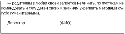 – родителям в любви своей запретов не чинить, по пустякам не командовать и тягу детей своих к знаниям укреплять методами сугубо гуманитарными.