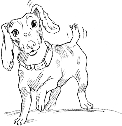И тут из-за ближайших кустов стремительно выскочила Тяпа, за которой, как змейка, мелькал в траве поводок. Её Емеля ни с кем не перепутал бы! И она его тоже. Остановившись перед Емелей, Тяпа раздвинула в стороны ушки и посмотрела на него, повиливая хвостом. Изумлённый папа наклонился и прочитал вслух по слогам надпись на ошейнике: «Иг-рать!»
