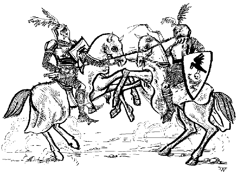 “To you four, sirs,” replied the Knight, addressing those who had last spoken, “and to your honourable and brave masters, I have one common reply. Send my compliments to your masters and tell them that I ask them to pay for their horses and armour.”