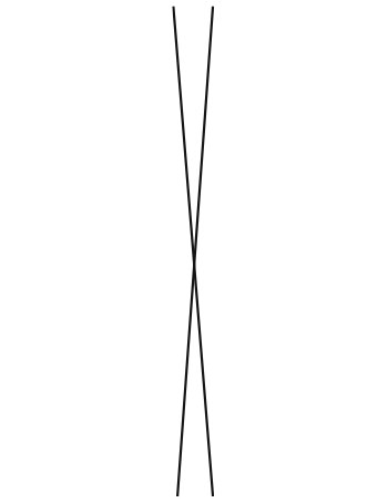 Посмотрите на рисунок. Кажется, что есть две прямые линии, но вы можете создать третью. Для этого наклоните книгу перпендикулярно вашим глазам. Расположите ее так, чтобы точка пересечения была перед вами. Сфокусируйте взгляд на точке пересечения. Видите третью линию? (Она должна напоминать короткую булавку, торчащую из страницы.)