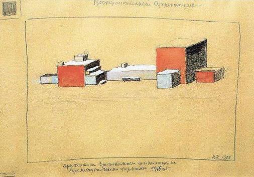 К. Малевич призывал отказаться от копирования не только форм природы, но и форм самой архитектуры. Он настаивал на невозможности использования в современном ему городе сложившегося языка архитектуры и выступал с его жесткой критикой. В статьях, размещенных в газетах «Анархия» и «Искусство коммуны», он пишет, что новое не может ужиться со старым и что в то время, как все остальные искусства уже совершили огромный прорыв вперед, архитектура по-прежнему топчется на месте, опираясь, «как на костыли», на греческие колонны: «Искусство живописи двинулось вперед за современной техникой машин. Литература оставила чиновничью службу у слова, приблизилась к букве и исчезла в ее существе. Музыка от будуарной мелодии, нежных сиреней пришла к чистому звуку, как таковому. Все искусство освободило лицо свое от постороннего элемента, только искусство архитектуры еще носит на лице прыщи современности, на нем без конца нарастают бородавки прошлого»[31].