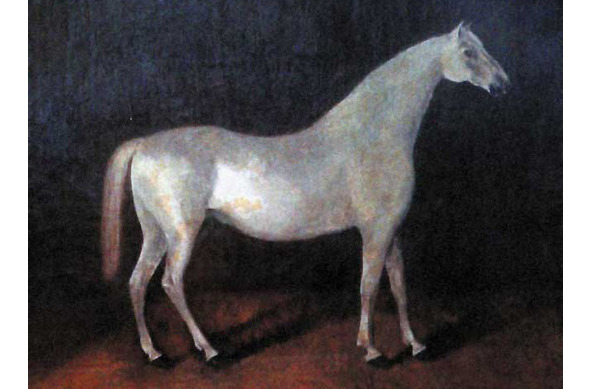 Арабский жеребец Сметанка. Картина крепостного художника конца XVIII века, предположительно Гавриила Васильева, Музей коневодства, Москва