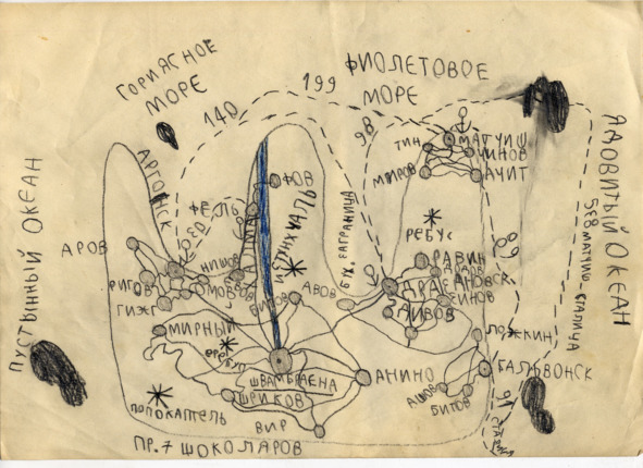 Населенным пунктам даны имена – пародии на советскую топонимику…1
