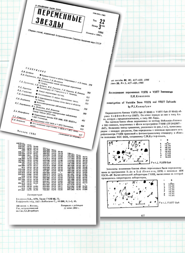 Павлик стал ходить в лабораторию к Павлу Николаевичу. Он поручил Паше сделать вычисления на основании многолетних наблюдений переменных звёзд в созвездии Змееносца. Измерения за несколько десятков лет хранились в институте в виде фотонегативов на стёклышках. Нужно было иметь очень много терпения и работоспособности, а они у Павлика были. Павлик ходил туда дважды в неделю после школы и обрабатывал эти стёклышки, по каждому делал расчёты.