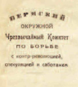 Председателем комитета был назначен Ф. Н. Лукоянов, его помощником – П. И. Малков. О полноте власти, данной этим людям, свидетельствует удостоверение Малкова, полученное в начале его работы: «Предъявитель сего удостоверения Павел Иванович Малков состоит членом Пермского окружного Чрезвычайного комитета по борьбе с контрреволюцией, спекуляцией и саботажем и имеет право в любое время по собственной инициативе производить обыски, аресты лиц, реквизиции и конфискации товаров и имущества. Все организации обязаны оказывать ему содействие, предоставляя в его распоряжение нужные средства и технические силы. Все милиционеры и красноармейцы обязаны подчиняться всем распоряжениям товарища Малкова…»[23]. Декрет «Социалистическое Отечество в опасности» (21 февраля 1918 г.) давал право сотрудникам ЧК расстреливать на месте контрреволюционеров, шпионов и уголовников.