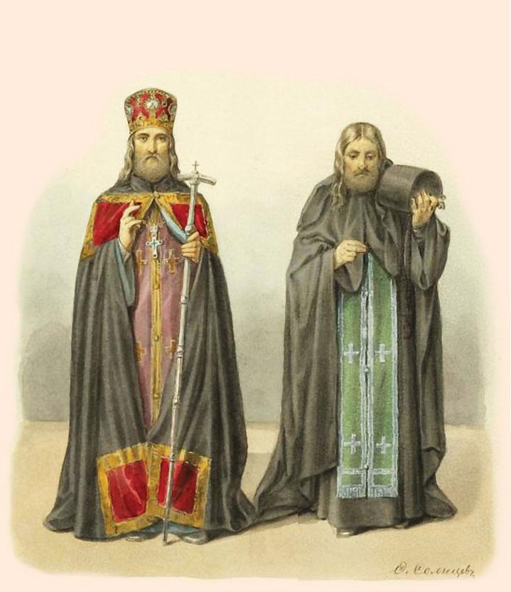 Ф. Солнцев. Архимандрит и иеромонах. Рисунок из книги «Древности Российского государства». Ранее 1853 г.