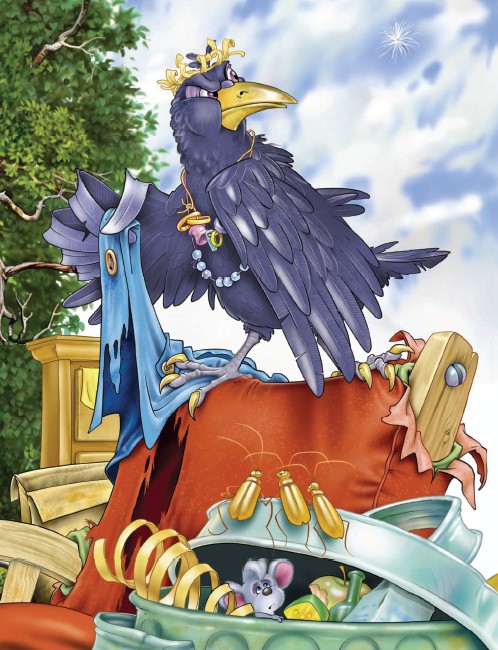 Однажды кто-то вынес на пустырь сломанное кресло, его водрузили прямо на мусорный бак. Обивка кресла была порвана, в нескольких местах из неё торчала рыжая стружка. Заметив этот диковинный предмет, Ворона немного покружила над ним и уселась на спинку. Она повернула голову вправо-влево и, довольная, прищёлкнула клювом: