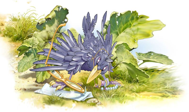 Вдруг в листьях лопуха что-то блеснуло, Ворона немедленно бросилась туда посмотреть: это были очки со сломанной дужкой.