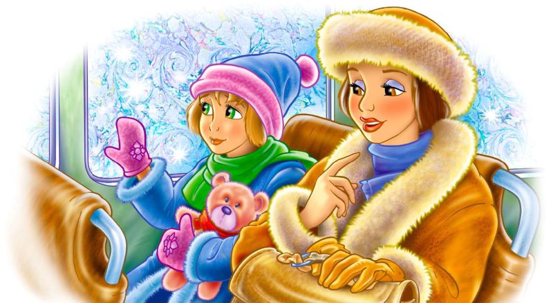 «Стояла зима, на улице было ветрено и холодно. Настенька с мамой долго ждали на остановке автобус, наконец он подъехал, они вошли и уютно устроились у окошка. Стекла салона были покрыты морозными узорами, и, пока автобус кружил по улицам, девочка, не видя ни домов, ни прохожих, разглядывала эти причудливые вензеля. Настеньке они представлялись заколдованным царством, в котором оказалась и сама она. Девочка представила себя драгоценным камушком в красивом кулоне Княжны. Кулон – это украшение, его носят на шее, об этом Настя узнала вчера на уроке истории. Такие вещицы делают из дорогих металлов – золота, серебра и инкрустируют драгоценными камнями, а еще расписывают эмалью. Именно таким был кулон Княжны, а Настя была маленькой Изумрудинкой среди множества самоцветов.