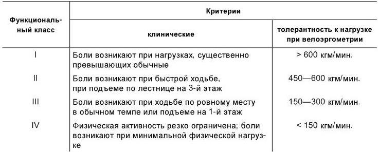 Классификация стенокардии напряжения стабильного течения