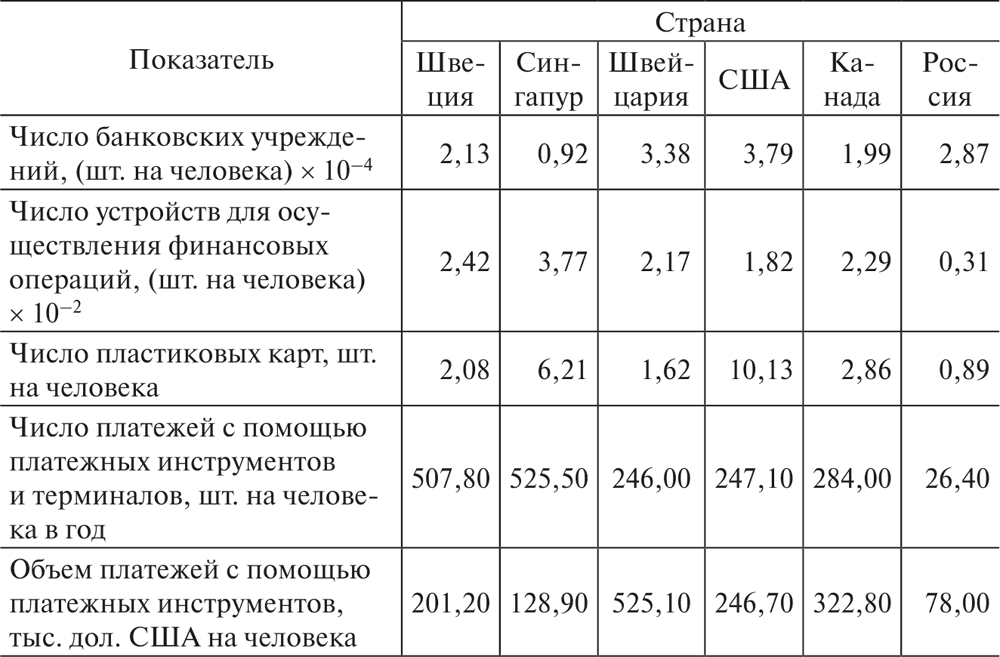 Таблица 1.3 Показатели развитости финансовой инфраструктуры некоторых стран[14]