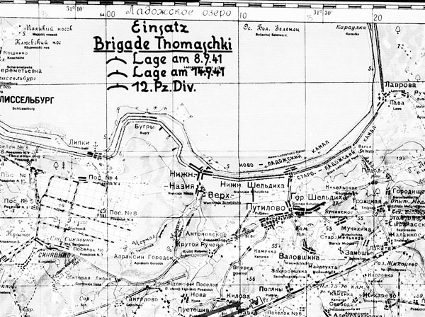 Перед захватившим Шлиссельбург 39-м моторизованным корпусом Рудольфа Шмидта (12-я танковая дивизия, 20-я моторизованная дивизия, 424-й пехотный полк 126-й пехотной дивизии) была поставлена задача продвижения на восток, к Волхову и соединения с финнами[10]. Для этих целей предполагалось выделить 4 дивизии – две танковые и две моторизованные. Ранее, задачу наступления на Волховстрой предполагалось возложить планировалось возложить на 4-ю танковую группу, но решением ОКХ ее теперь решили перебросить под Москву вместе с частью подвижных соединений Группы Армий «Север».