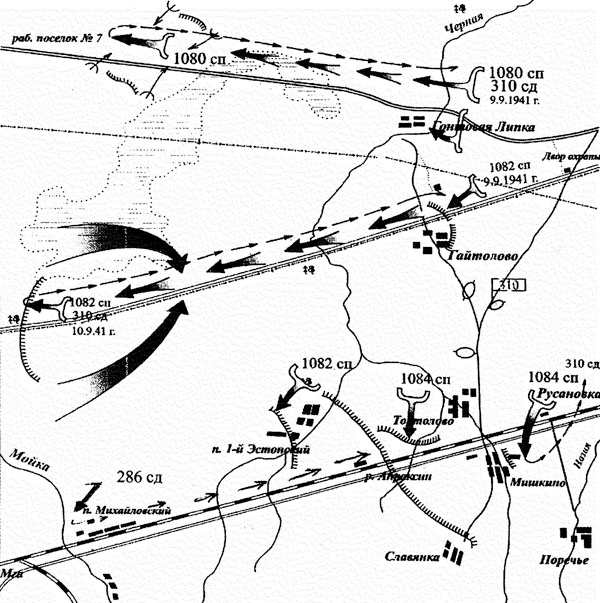 Действия 310-й стрелковой дивизии 54-й армии в ходе сентябрьского наступления (Кусаинов М.К. Тайны Синявинских болот и высот. Астана, 2004)