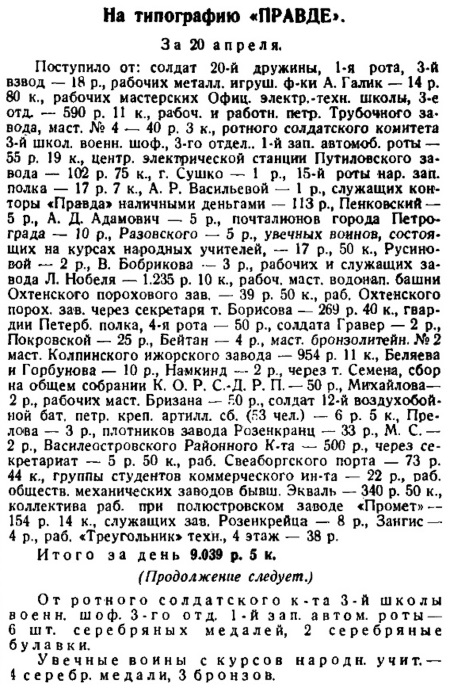 В Железный фонд Правды. Правда. № 8. 14 марта.