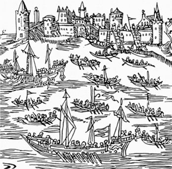 Незаперечним фактом є те, що перша морська битва за участі козаків, згідно з історичними документами, відбулася у 1492 році біля міста Тягиня (Бендери). Тоді козаки взяли на абордаж турецьку галеру і звільнили усіх невільників. А закінчилася їхня морська епопея в 1696 році при взятті Азова.
