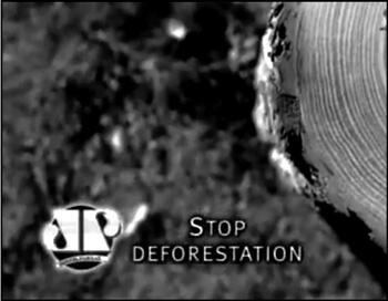 Как вы помните, звуковым фоном этого ролика оставалось пение лесных птиц. И вот теперь мы впервые слышим густой баритон диктора: «Остановите вырубку лесов» (рис. 8).