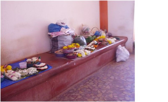 У входа в храм продаются цветочные гирлянды, фрукты, цветы лотоса. Нельзя прийти в храм без подношений! Вы отдаете брамину принесенные дары, причем обязательно правой рукой, в эту же руку он наливает вам священной воды.