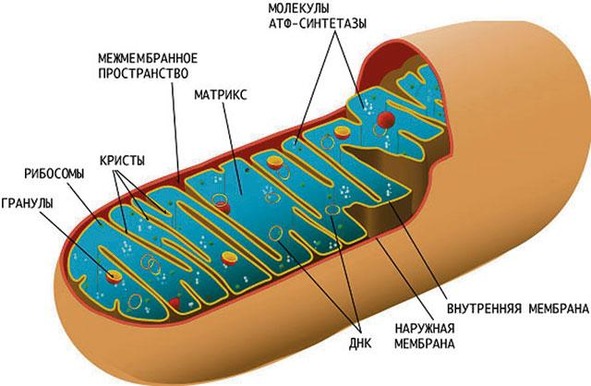 На кристах содержатся комплексы дыхательных ферментов, необходимые для окислительного фосфорилирования. Результатом его является образование АТФ и выделение большого количества энергии, необходимой для жизнедеятельности клеток. Митохондрии содержат цитоплазматическую ДНК, отличную от ДНК ядра.