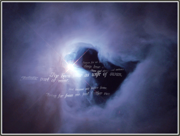 Autistic part of mine,I’m so sorry…Outstanding, deep true storyIsn’t normal, but divine.Candles burning, shining sun,Stars and streets and autumn trees —All are known for us through eyes and ears.You like talking, having fun,Being far from me, just farther run.Like an old and wiseI’ve been solving exercise.I’ve been near as wife of swan.Catching painMy soul was dedicated summer rain.But more I gave, so more I won.To be out and to be lost —Who those words for? Me or you?One way bridge of conversationHas become an innovation.But you know… Web is covered with the frost.I’m not warrior, just kind of gnome.And the fortress you’d constructed,Just became my native home.Breathe the skin,Look eyes to eyes…And the hand upon the shoulder lies.No. We’re talking through the screen.*****Summer, 2012