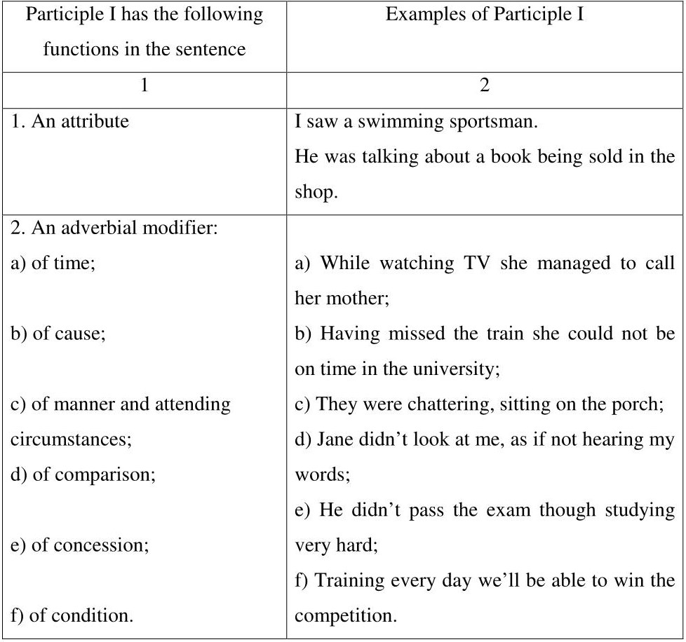 Table 4 – Syntactic functions of Participle