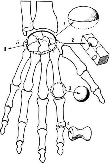 Рис. 1.7. Формы суставов (на примере суставов кисти):