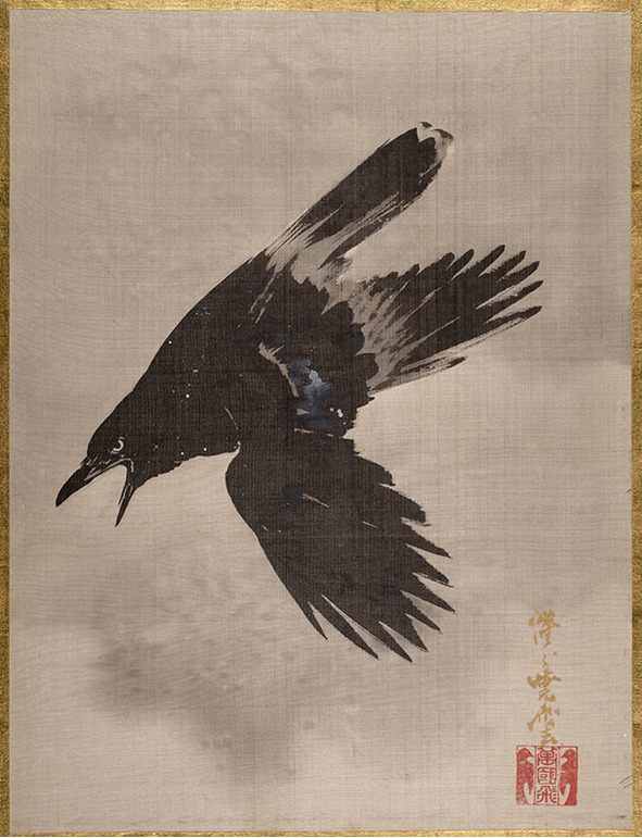 Ворона в полёте. Гравюра Каванабэ Кёсай (1831—1889)