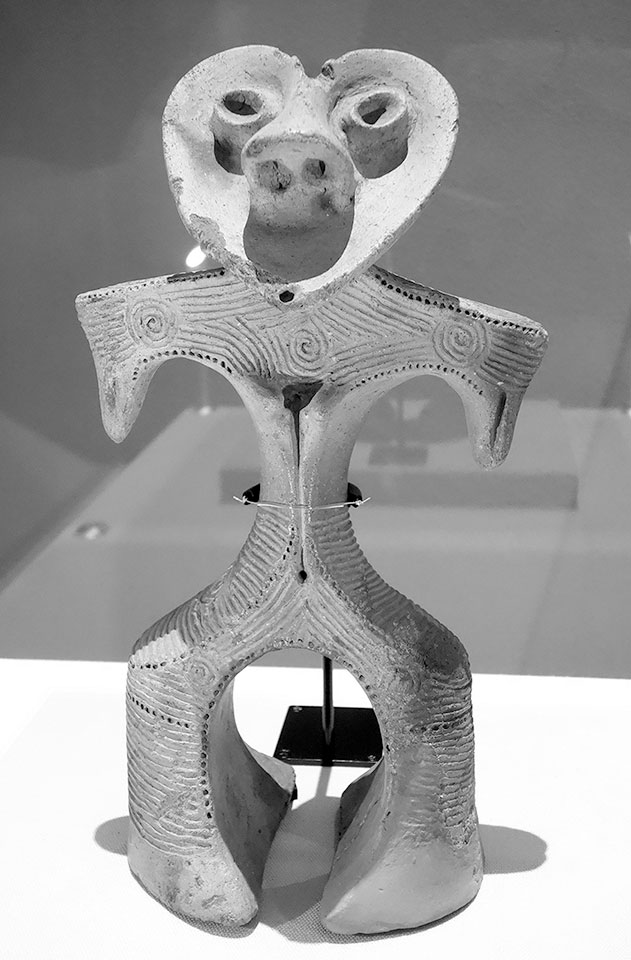 Догу – глиняная фигурка эпохи Дзёмон с лицом в форме сердца. Токийский национальный музей.