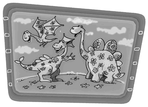 – Колись, багато мільйонів років тому, територію сучасної України населяли добрі, простодушні та веселі істоти – волошкові квітозаври. Здебільшого вони полюбляли мешкати у наймальовничіших місцях поблизу річок та озер. Раціон їхнього харчування містив пелюстки троянд, дикий мед, пташине молоко та солодку росу. Але понад усе їм подобалося співати, гратися й танцювати. Волошковий квітозавр легко міг прожити півроку без меду і пташиного молока, три місяці без солодкої роси, але якщо йому три дні забороняли гратися й танцювати, то він занедужував і помирав від нудьги. Жили волошкові квітозаври як одна велика родина. Вони не знали, що таке лихо, зло і підступність. Однак…