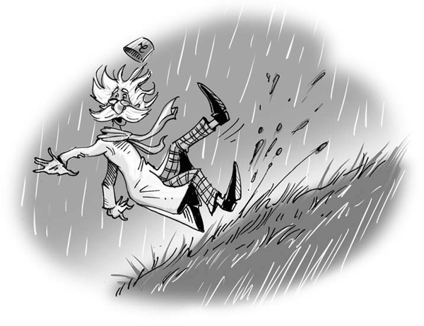 Від цього звуку Чудлик здригнувся і прокинувся. Підхопивши крісло, він був побіг до веранди, аж раптом послизнувся на мокрій траві, упав і покотився униз схилом пагорба.