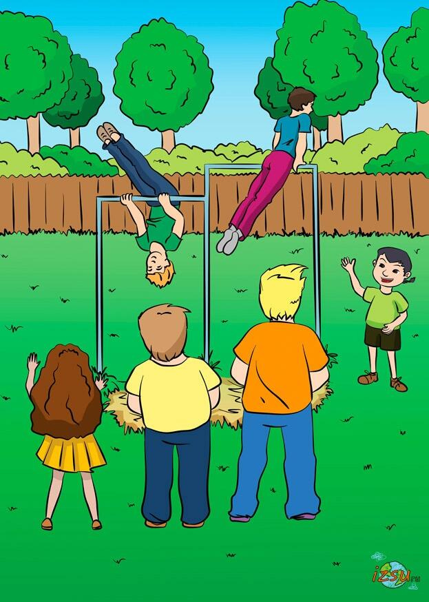 Все ребята дружно считали количество подтягиваний, которые делали на турниках Андрей с Алексеем. Они сделали по двадцать подтягиваний. После этого еще по пять подъемов с переворотом.