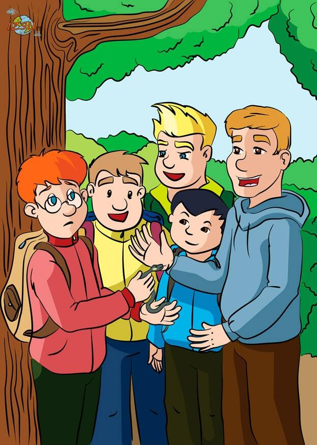 После того как преподаватель закончил тему со змеями, все увидели, как на дорогу выползла кто бы вы думали? змея! Ребята замерли. Только Петя ринулся вперед и с криком «это же уж!» схватил ее.