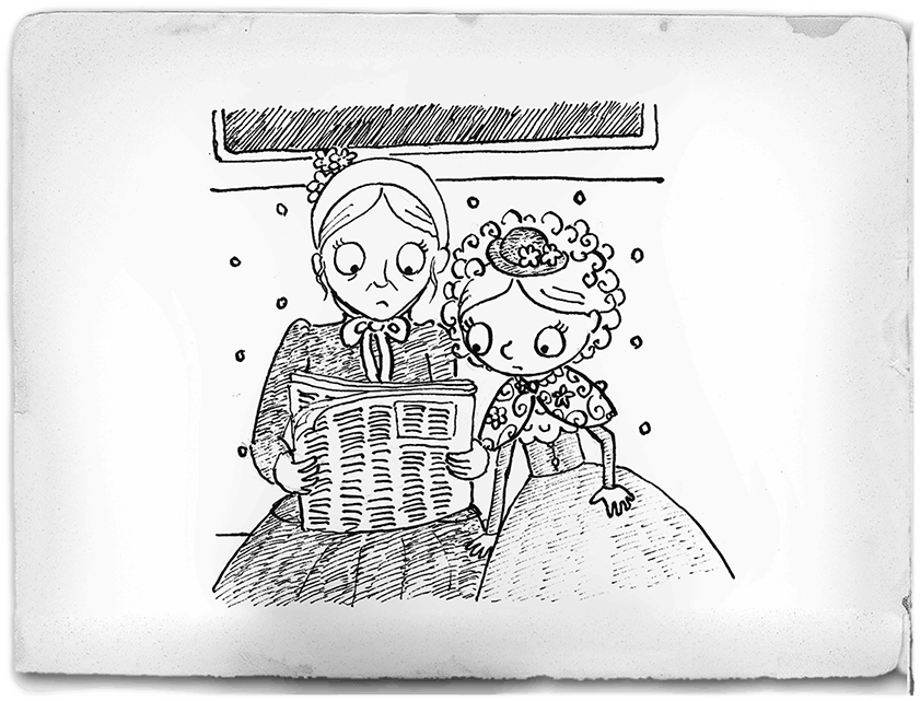 – Мейзи, не смотри на меня так! Ты права: шляпа похожа на гриб. Но она всё равно милая. Как приятно, что мадам так счастлива! – Элис довольно слизнула шоколад с пальцев и слегка толкнула Мейзи. – Как думаешь, что больше – шляпа или торт?