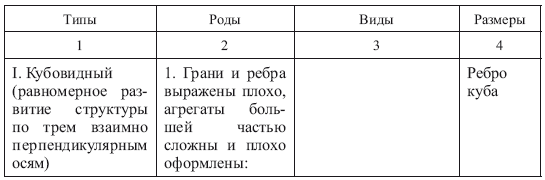 Различают три основных типа структуры (табл. 1.1, рис. 1.1), каждый из которых в зависимости от характера ребер, граней подразделяется на роды, а в зависимости от размера – на виды.
