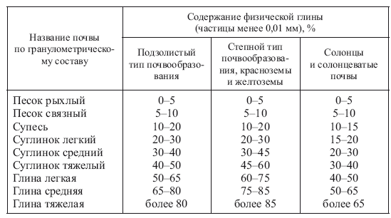 В бытовой терминологии различают почвы глинистые, песчаные, суглинистые (глина, песок, суглинок). В научно-практических специальных исследованиях для более детального разделения почв по гранулометрическому составу используется содержание преобладающих фракций: песка (1–0,25 мм), пыли (0,25-0,001 мм) и ила (менее 0,001 мм). Исходя из этого могут выделяться черноземы среднеглинистые иловато-пылеватые или каштановые почвы суглинистые иловато-песчаные (иловато-пылеватые, пылеватые и т. п.). Детализированная классификация почв по гранулометрическому составу применяется редко.
