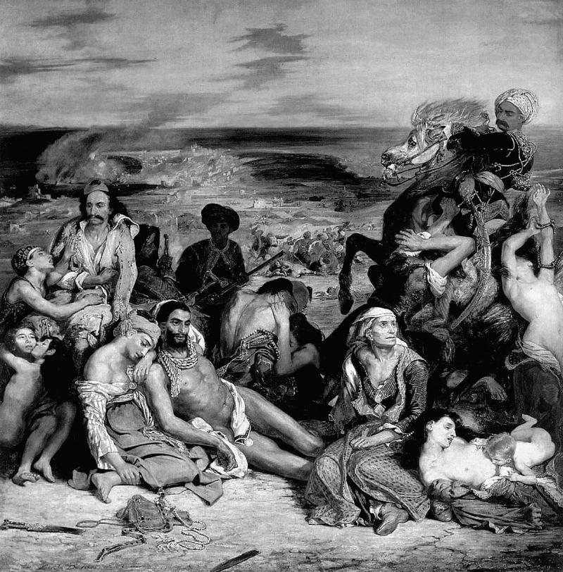 Эжен Делакруа. Резня на Хиосе. 1824. Лувр, Париж