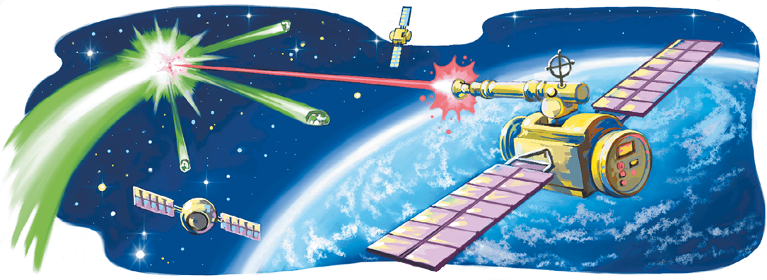 – Когда я проектировал эти бесполезные спутники, что болтаются сейчас на орбите, я снабдил некоторые из них мощными пушками, – ответил коварный ученый. – Чтобы когда-нибудь они принесли мне хоть какую-то пользу! Военные об этом даже не догадываются. Когда меня уволили, я успел украсть кое-какие коды запуска. Теперь один из этих спутников сослужит мне хорошую службу.