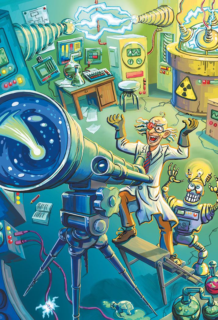 – О да!!! – завопил сумасшедший ученый доктор Финдершлотц, потрясая кулаками в воздухе. – Комета! Обломок от той самой планеты, она уже приближается к земной орбите! Нам неслыханно повезло, Железная Башка! Такой случай выпадает один раз в жизни!