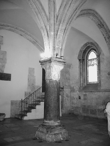 Сегодня Сионская Горница мало похожа на первоначальную евангельскую Горницу. На капители колонны у лестницы изображен пеликан, кормящий собственной плотью свое потомство. Этот распространенный образ Средневековья символически трактовал жертвенность самого Иисуса Христа.