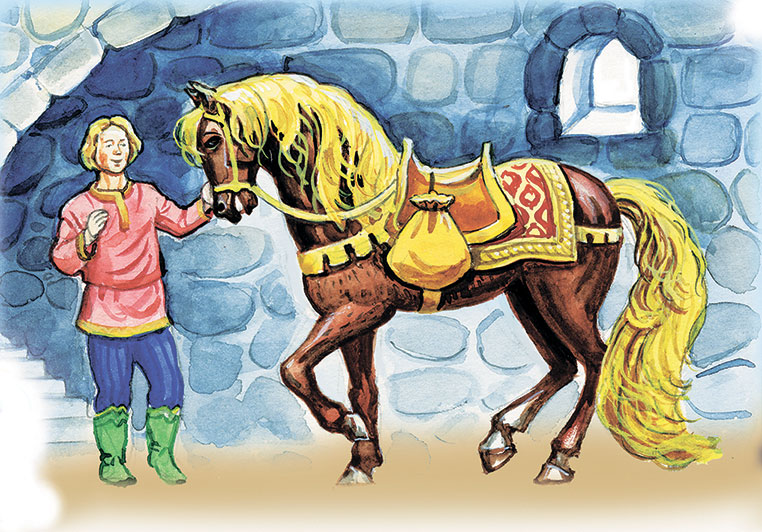 – Спасибо тебе, Иван-царевич, что достал мне невесту. Получай златогривого коня с уздечкой.