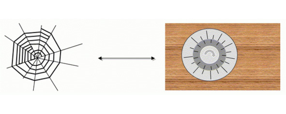 Это объясняет, почему мы не встречаем двух одинаковых паутин, – каждый паук строит криптошифр по своему личному алгоритму. Индивидуальность паука в этих терминах выступает как оператор, отображающий пространство локальных условий строительства (т.е. окружающий ландшафт, зависящая от него геометрия первичных радиальных линий, статистика ветра в данной точке леса, персональные качества паука, и т.п.) в пространство параметров сети. Среди последних предлагается особо выделить следующий: