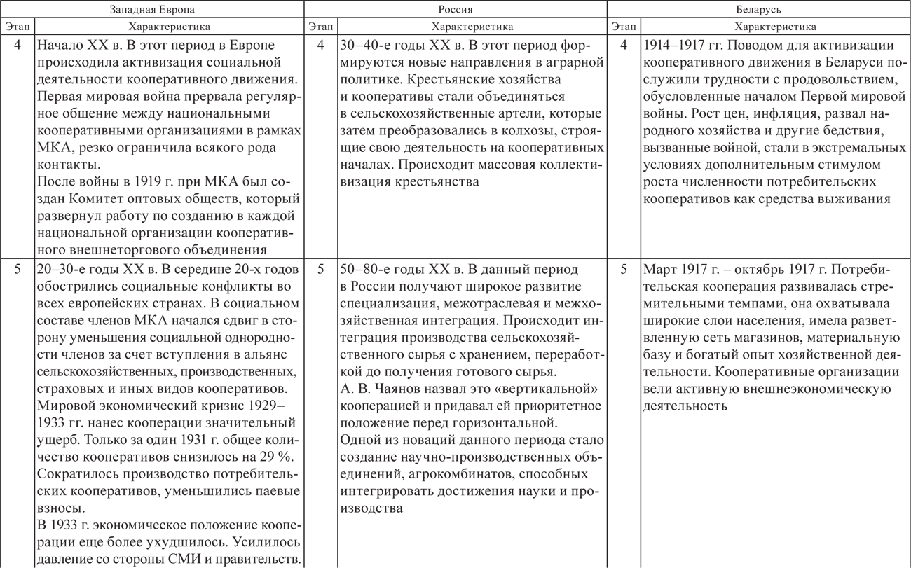 Таблица 1.3. Сравнительный анализ основных исторических этапов формирования кооперации и интеграции в странах Западной Европы, России и Беларуси
