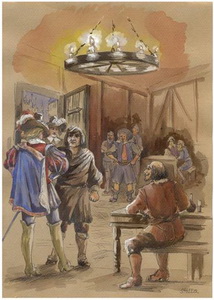 Пьяный вскинулся, но тут же осекся – рука юноши весьма выразительно похлопывала по эфесу шпаги, а рядом стояли его вооруженные друзья. Забияке осталось удовольствоваться раздраженным замечанием: