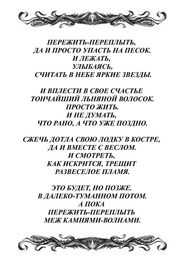 Бойтесь своих желаний. Ибо они имеют опасность сбываться. Правда, с огромным опозданием, что весьма прискорбно. Когда-то, лежа с ножом в боку, я бы многое отдала, чтобы умереть. Сейчас же отдала бы все, чтобы выжить. Нужно сказать, что в то далекое время причина для подобного хотения у меня была очень даже веская. Меня разыграли, как пешку, заставив вонзить нож в спину того единственного, которого я любила. И мне пришлось буквально выгрызть свою жизнь, но она меня не радовала. Тогда я с ужасом провожала каждую секунду, ибо надвигалась ночь, надвигалось возмездие. Меня ожидала страшная кара Стихий, по сравнению с которой тихая смерть на холодном каменном полу казалось благом. Но, увы, умереть не получилось. И тогда именно страх заставил меня подняться и идти вперед. Сейчас же заставлять нужды не было, но встать я не могла.