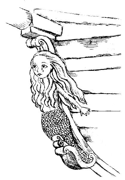Под записями отец сделал зарисовку носового украшения – русалку. Очень красивая деревянная статуя девушки. У неё длинные развевающиеся волосы, на щеках – слёзы. Мейзи разглядела и хвост русалки, а потом – сам деревянный нос корабля.