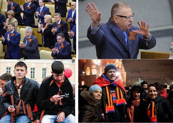Патриотический символ путинской России георгиевские ленты на депутатах Госдумы РФ и на рядовых гражданах